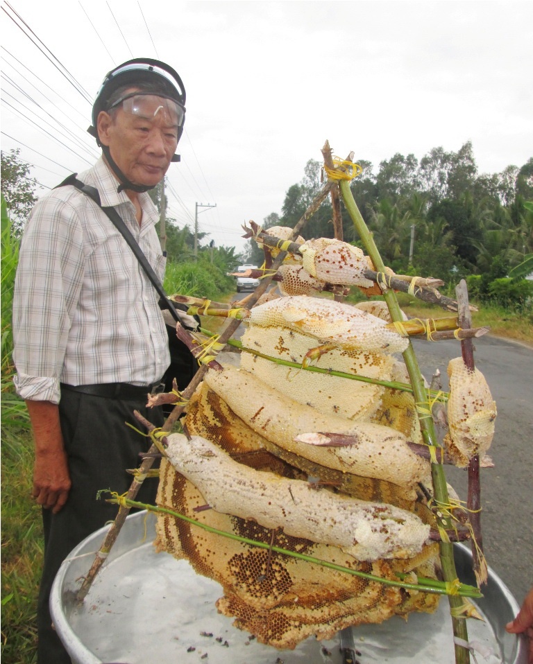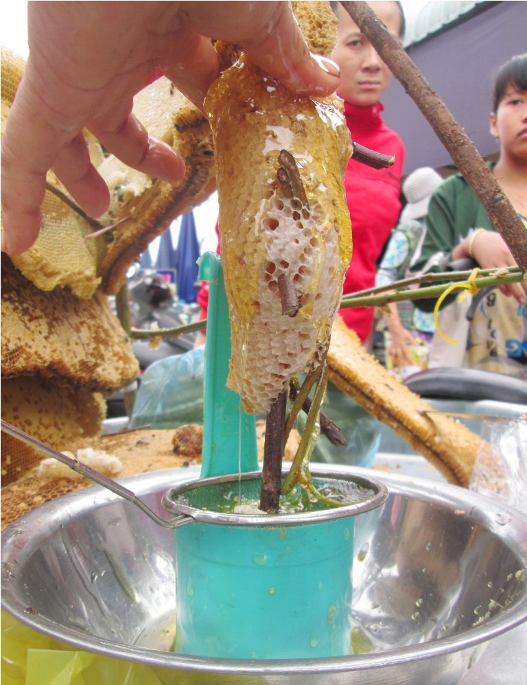 | Mua nguyên tổ ong, người tiêu dùng sẽ tự vắt lấy mật, vì để đảm bảo hàng không bị pha trộn với mật ong nuôi. |