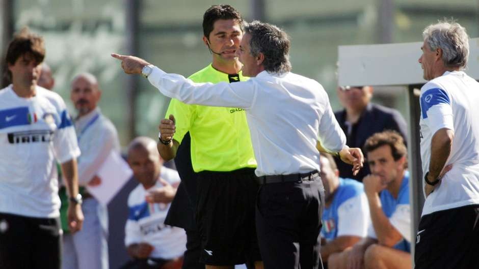 | Tháng 9/2009: Chiến lược gia người Bồ Đào Nha nhận thẻ đỏ trực tiếp trong chiến thắng 2-1 của Inter Milan trước Cagliari. "Người đặc biệt" phản ứng dữ dội khi trọng tài không rút thẻ phạt đối với trung vệ Davide Astori sau pha phạm lỗi nguy hiểm với Mario Balotelli. Kết quả là ông bị treo quyền chỉ đạo 1 trận cùng khoản tiền phạt 13.500 bảng. |
