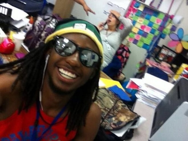 | Đây có thể nói là một trong những bức ảnh chụp tự sướng bị ghét nhất trên mạng. Trước sự đau đớn vì lên cơn co thắt, sắp sinh em bé của cô giáo, chàng nam sinh vẫn vui cười, tạo dáng như không hề có chuyện gì xảy ra. |