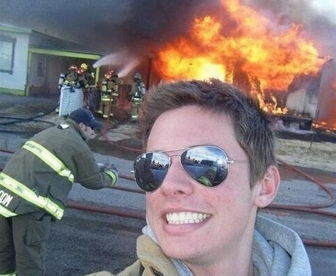 Chàng lính cứu hỏa này nhanh chóng nổi tiếng trên mạng nhờ bức ảnh không giống ai này. Phần lớn mọi người đều cho rằng, chắc không ai có thể hạnh phúc khi nhìn thấy đám cháy lớn hơn anh ta, nhất là khi anh còn là người đang phải làm nhiệm vụ.