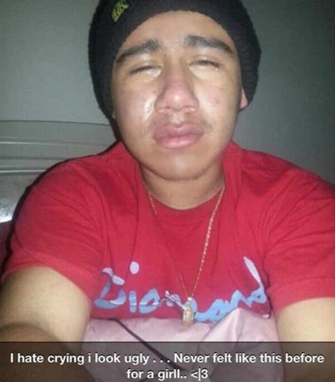 Bức ảnh được đánh giá là ngớ ngẩn và giả tạo nhất mạng xã hội. Anh chàng câu like (thích) bằng cách chia sẻ khoảnh khắc đau khổ của chính mình và kèm theo dòng chú thích rằng mình không muốn khóc, trông bản thân rất xấu...