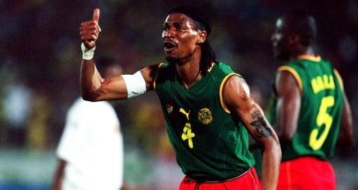 Trang phục thi đấu của đội tuyển Cameroon là một trong những bộ áo đấu đặc biệt nhất thế giới bởi không có tay áo. Trang phục này phù hợp với môn bóng rổ hơn bóng đá. Các cầu thủ phải miễn cưỡng mặc thêm một chiếc áo thun có tay bên trong để được ra sân bình thường theo yêu cầu của FIFA. |