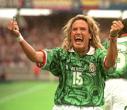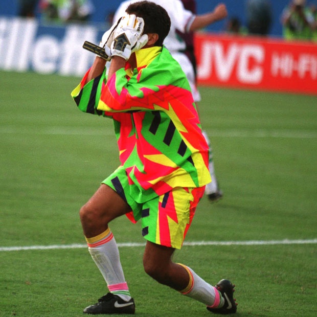 | Bộ trang phục của thủ môn đội tuyển Mexico tại World Cup 1994 là một trong những chiếc áo màu mè nhất trong lịch sử bóng đá. Không biết Jorge Campos có ý định làm lóa mắt khiến đối phương mất tập trung hay không nhưng nó nhanh chóng dẫn đầu danh sách những bộ áo đấu xấu nhất lịch sử World Cup. |