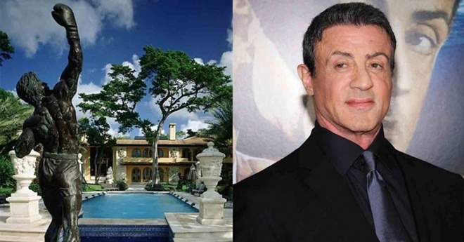 Với tổng diện tích gần 6 ha, ngôi biệt thự theo phong cách tân cổ điển không có vẻ gì hào nhoáng, nhưng bể bơi trong đó chỉ có thể được miêu tả bằng cụm từ “phô trương vô độ”. Bức tượng nhân vật Rocky Balboa bằng đồng có kích thước như người thật “làm dáng” ở đầu bể bơi. Đây có lẽ là sự tôn kính mà Sylvester Stallone muốn dành cho nhân vật đã đem tên tuổi của ông đến với công chúng vào năm 1976. Đầu bên kia bể bơi là một cây xanh đứng đơn độc mà oai nghiêm. Đá cẩm thạch trắng lát quanh hồ bơi cùng với 2 bình đá càng làm nổi bật vẻ đẹp Hy Lạp-La Mã.