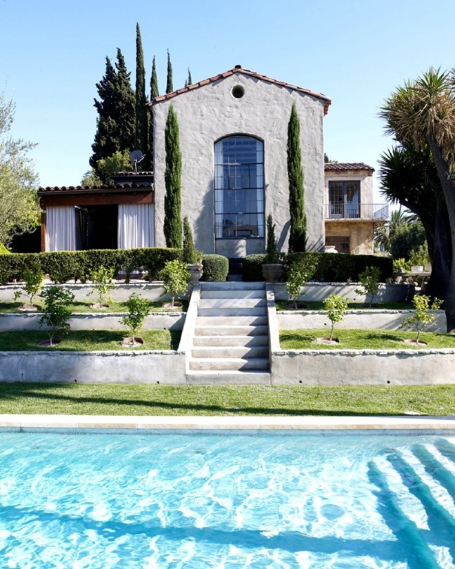 Ngôi sao điện ảnh Ellen Pompeo sở hữu biệt thự theo phong cách Địa Trung Hải những năm 1920. Pompeo hợp tác với nhà thiết kế nội thất Martyn Lawrence trong khâu trang trí nội thất cũng như bối cảnh ngoài trời sao cho thật tinh tế và lịch lãm. Khu bể bơi không quá rộng, phô trương, mà ngược lại nó đem lại cảm giác riêng tư và sành điệu.