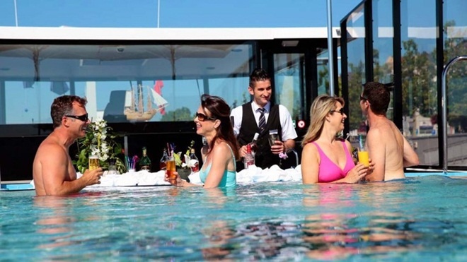 8. AmaWaterwaysVới nhiều du thuyền thiết kế tùy chọn tại châu Âu, Nga, châu Á, châu Phi, AmaWaterways dẫn đầu ngành công nghiệp này từ năm 2002. Thông thường, du thuyền trên sông của hãng này không có bể bơi. Tuy nhiên, các du thuyền của AmaWaterways tại châu Âu như AmaCerto, AmaSonata, AmaReina, AmaVista và AmaSerena không chỉ có bể bơi nước nóng xa xỉ, mà còn được thiết kế quầy bar với ghế ngồi dưới nước theo phong cách Caribbe. |