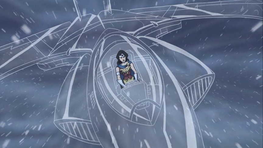Máy bay tàng hình của Diana không hoàn toàn tàng hình, nó thực ra ở chế độ “trong như pha lê”. Càng về sau trong truyện, Wonder Woman càng ít bay mà sử dụng phương tiện này để di chuyển. |