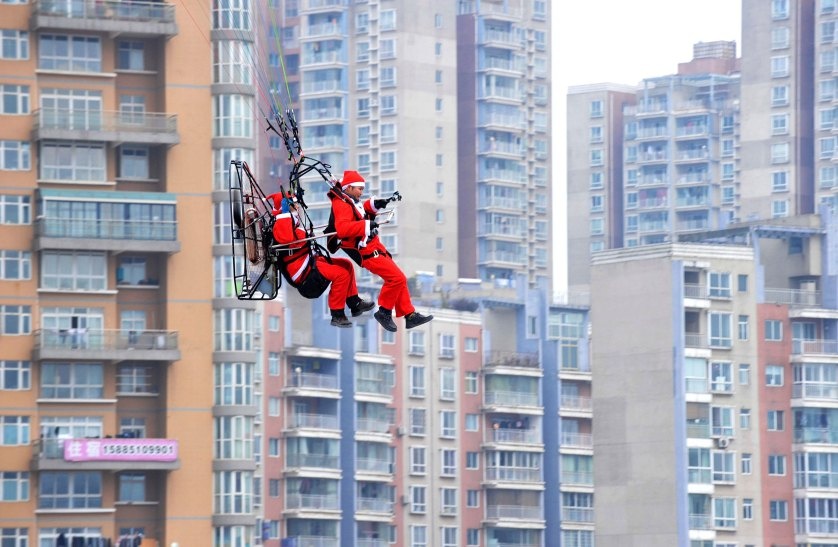 Santa Claus di chuyển bằng cáp treo ở Quý Dương, tỉnh Quý Châu, Trung Quốc. Ảnh: Reuters