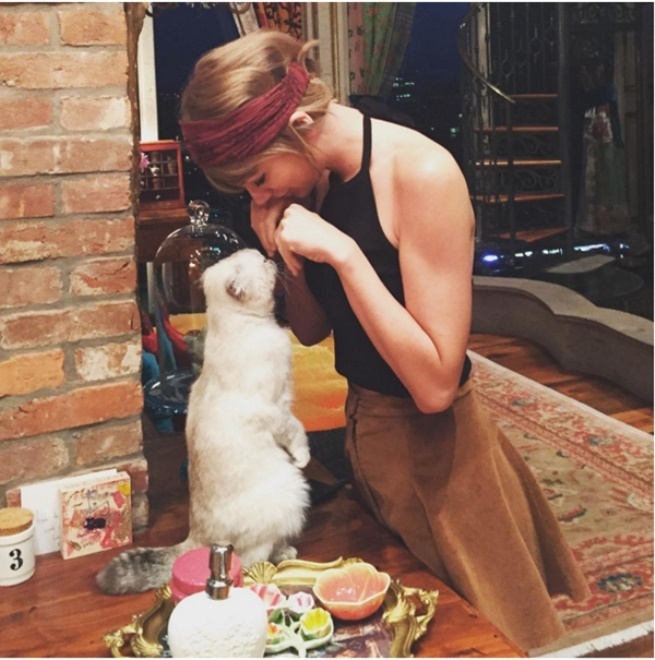 | 7. Bức ảnh 2,3 triệu like (thích) của Taylor tạo dáng đáng yêu bên mèo cưng Meredith. |