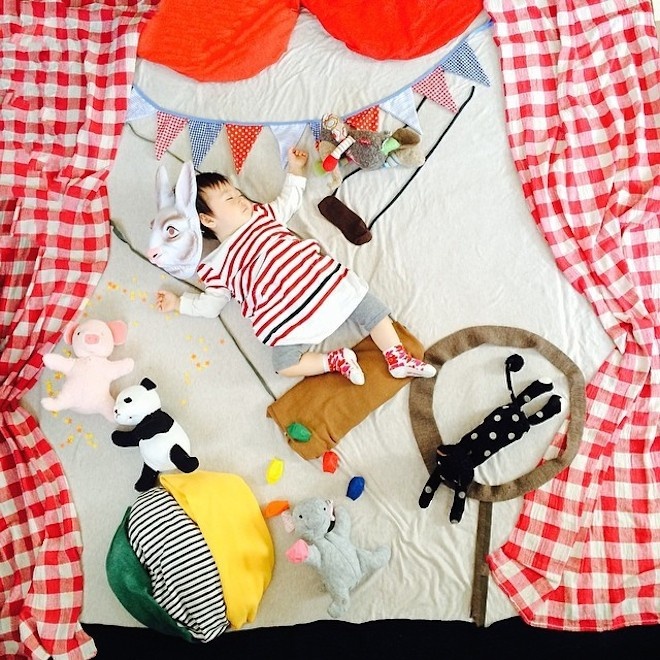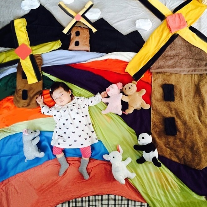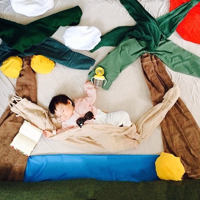 Eriko Ohga khiến nhiều dân mạng thích thú khi sắp đặt các không gian phiêu lưu đáng yêu ngay cả lúc con gái đang say giấc nồng.