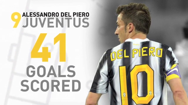 | Gần như dành trọn sự nghiệp của mình trong màu áo của bà đầm già Juventus - Del Piero đã ghi 41 bàn thắng tại đấu trường Champions League. Anh từng bước lên bục dành cho người chiến thắng khi cùng Juventus đăng quang ở mùa giải 1995/1996, cùng với ba lần về nhì ở các mùa giải 2002/2003, 1997/1998, 1996/1997 |