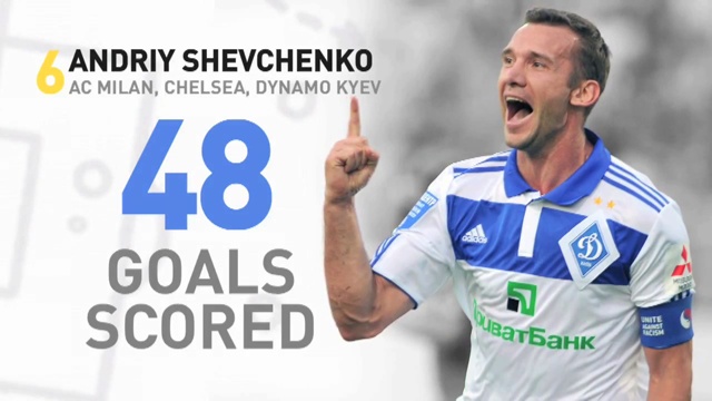 Andriy Shevchenko chuyển đến Chelsea từ Milan với mức phí chuyển nhượng kỷ lục. Tuy nhiên tại London anh đã không thể hiện được khả năng để rồi sau đó phải trở về quê nhà thi đấu trong màu áo của Dynamo Kyev. Tuy vậy con số 48 bàn thắng của anh vẫn là con số đáng mơ ước với nhiều đang thi đấu tại châu Âu.