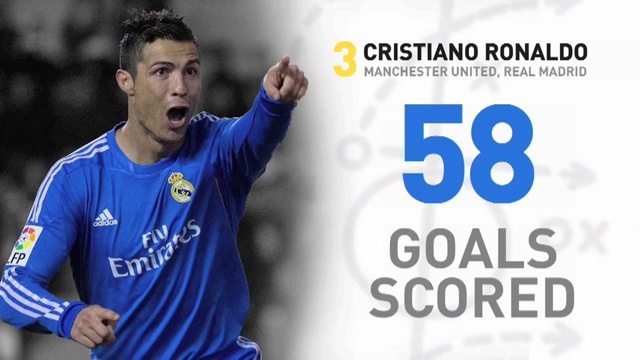 | C. Ronaldo đang trải qua một năm thi đấu cực kỳ thành công. Anh đã ghi được 14 bàn thắng tại Champions League trong năm 2013 và con số này có thể tiếp tục tăng trong những ngày sắp tới. Mới 28 tuổi và đang ở phong độ đỉnh cao chắc chắn rằng số bàn thắng của CR7 sẽ không dừng lại. |