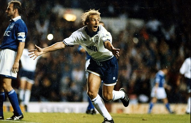 | Jurgen Klinsmann (từ Monaco tới Tottenham, 1994): Người hâm mộ bóng đá Anh rất bất ngờ khi Klinsmann chia tay Monaco để đầu quân cho Tottenham năm 1994. Dù chỉ thi đấu tại White Hart Lane vỏn vẹn 1 mùa giải, cựu danh thủ người Đức vẫn được xem là huyền thoại của Spurs. Nhà vô địch World Cup 1990 ghi 30 bàn sau 50 lần khoác áo Tottenham. |