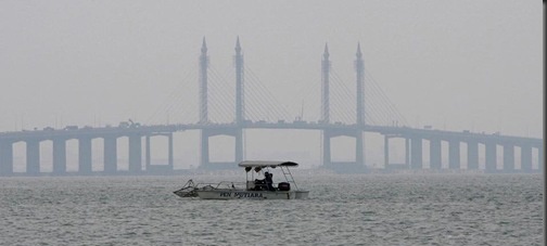 Nối vùng đất liền Thượng Hải với Cảng Dương Sơn ởTrung Quốc, cầu Đông Hải có chiều dài 32,5 km và hoạt động hồi tháng 12/2005. Ảnh: blogspot.com.