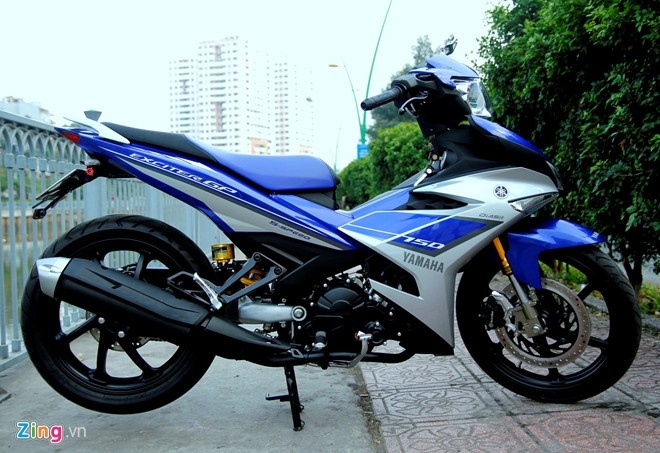 3. Exciter 150 lên nhiều đồ chơi hàng hiệu ở Sài Gòn Xe thuộc sở hữu của một biker sống ở Quận 3, TP HCM. Sau khi mua xe chính hãng, anh này độ lại chiếc xe, lên một số đồ chơi như gắp đơn bằng nhôm, được lấy lại từ một chiếc Honda NSR 150, phuộc sau dạng mono-shock hiệu Gazi, bình dầu Rizoma, phuộc trước hành trình ngược Ohlins, gương chiếu hậu Rizom. |