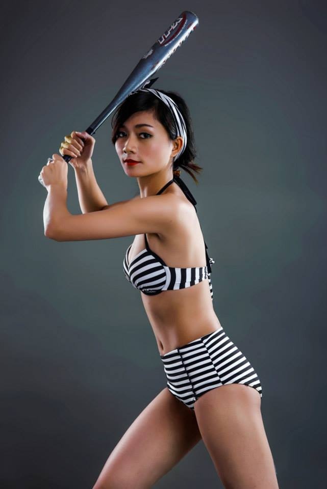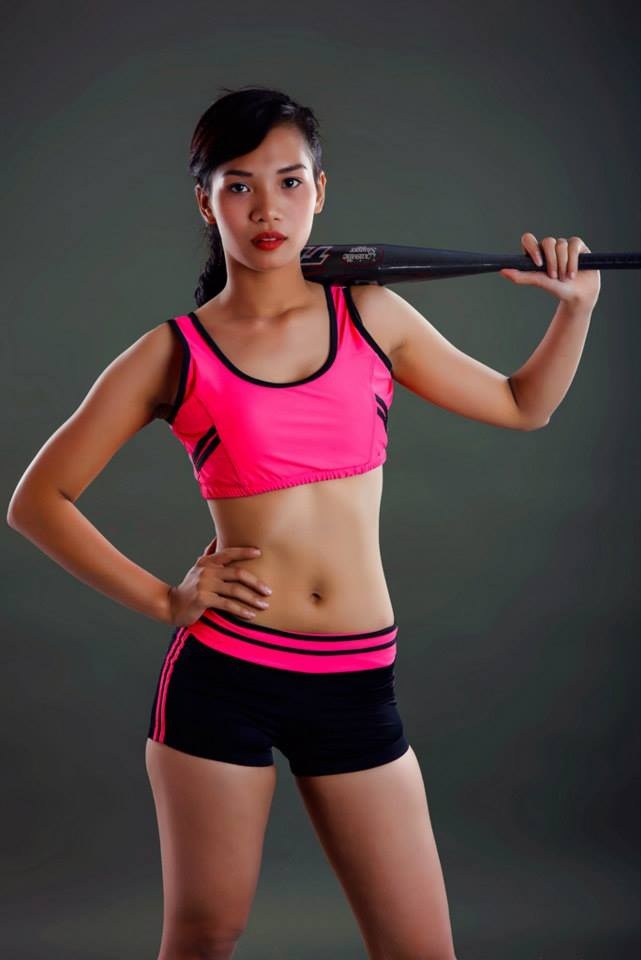 | Chu Khánh Linh tạo dáng cùng gạy bóng chày. |