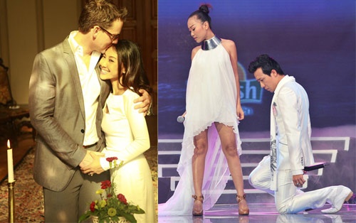 | Nữ diễn viên kiêm MC Ốc Thanh Vân khi đứng cạnh chồng vẫn rất xinh đẹp dù khoảng cách chiều cao của họ chênh nhau khá lớn. Cô luôn tạo dấu ấn về thời trang nhã nhặn, gợi cảm mà hiếm khi bị lộ chân ngắn. Sau 2 lần mang bầu, cô vẫn miệt mài cống hiến cho nghiệp diễn. Cô có những vai diễn ấn tượng trong Cô nàng bướng bỉnh, Cô gái xấu xí (phim truyền hình), Người vợ ma, Ngôi nhà hoang, Làm… (kịch). Ngoài đóng phim và diễn kịch, cô còn được yêu mến bởi lối dẫn chương trình hoạt bát trong Bước nhảy hoàn vũ, Chuyện phái Đẹp, Cầu vồng nghệ thuật… |