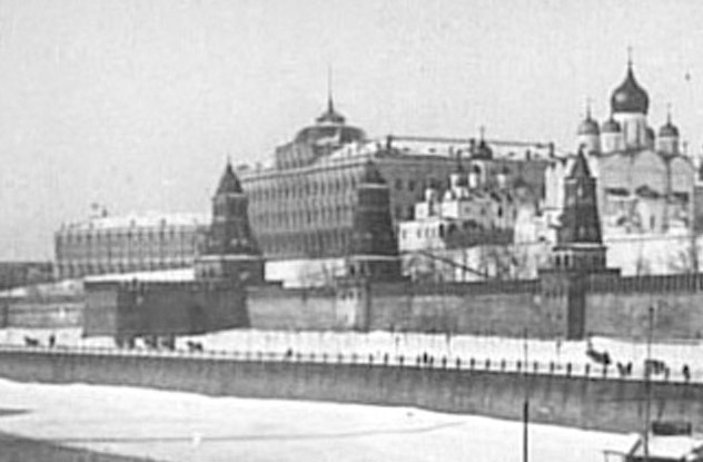 Trong trận chiến năm 1812, điện Kremlin, Nga, bị Hoàng đế Pháp Napoleon đánh chiếm và suýt trở thành nơi ở của ông trước khi người Pháp rút quân. Khi rời đi, Hoàng đế Napoleon yêu cầu làm nổ tung điện Kremlin và kế hoạch đó suýt đã thành công. Tuy nhiên, một cơn mưa đúng lúc đã làm ướt các ngòi nổ. Nhiều thùng thuốc nổ được người dân phát hiện khi dập lửa. Dẫu vậy, công trình này vẫn không thoát khỏi bị hư hại. 5 vụ nổ đã xảy ra, phá hủy phần lớn cấu trúc và gây nên hư hại lâu dài. Hai trong số các tháp đã bị phá hủy, kho vũ khí bị sập một phần, một số tòa nhà chính phủ cũng bị hư hại trong vụ nổ. Vụ nổ đầu tiên, mạnh nhất trong 5 vụ nổ, mạnh đến nỗi không chỉ cửa sổ và kính của điện Kremlin và các tòa nhà lân cận bị vỡ, ngay cả những khung cửa sổ cũng bị thổi tung. |