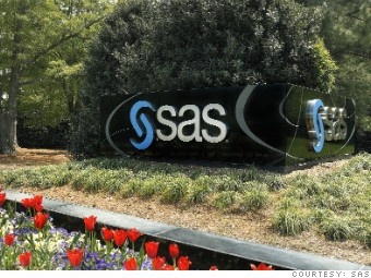 2. SAS Vị trí xếp hạng: 2 Vị trí xếp hạng năm trước: 2 Doanh thu hàng năm: 2.870 triệu USD Công ty phát triển phần mềm SAS dành cho nhân viên cùng những người thân trong gia đình họ sự chăm sóc đặc biệt về y tế. Một trung tâm gồm 11 y tá, 3 bác sĩ gia đình, 3 chuyên gia dinh dưỡng, 5 kỹ thuật viên phòng thí nghiệm, 1 nhà tâm lý học, 3 nhà vật lý trị liệu được thành lập để chuyên trách về vấn đề này. |