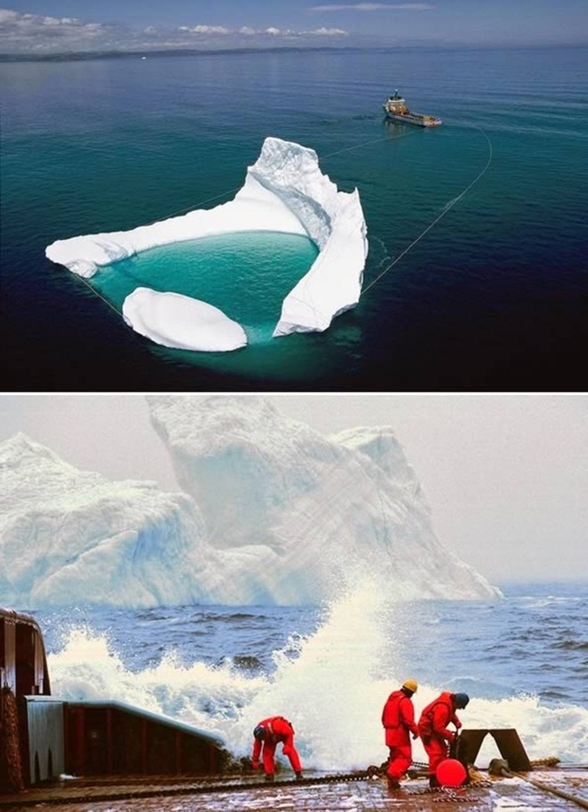 5. Di chuyển băng chuyên nghiệpSau thảm kịch chìm tàu Titanic năm 1912, một số quốc gia châu Âu và Bắc Mỹ đã thành lập tổ chức Đội tuần tra băng quốc tế (IIP) để ngăn chặn những tai nạn tương tự. IIP sử dụng dữ liệu lấy từ vệ tinh, radar và các máy bay để cung cấp những thông tin quan trọng về vị trí tảng băng và đường đi an toàn để qua chúng cho ngành hàng hải. Những thông tin từ IIP vô cùng quan trọng đối với những người xử lý băng được các công ty dầu thuê để trông coi giàn khoan. Ước tính mỗi năm có khoảng 20.000-40.000 tảng băng, phần lớn thuộc sông băng Greenland, trôi theo dòng chảy vào Bắc Đại Tây Dương, trở thành mối nguy lớn cho các giàn khoan bên bờ biển Newfoundland. Những người xử lý băng có nhiệm vụ quan sát băng và khi thấy tảng băng nguy hiểm, họ phải kéo chúng ra khỏi khu vực giàn khoan bằng mỏ neo chuyên dụng. |