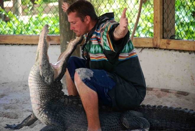 3. Biểu diễn với cá sấuNhững người làm nghề này có thể phải ngồi lên lưng cá sấu hay thậm chí đưa đầu vào miệng chúng. Một trong những vụ tai nạn gần đây liên quan tới nghề này xày ra tại Ohio, Mỹ. Trong chương trình, con cá sấu đã cắn vào tay người biểu diễn và không chịu nhả ra. Dù tai nạn này không quá nghiêm trọng nhưng với những khán giả chứng kiến thì đây thực sự là ác mộng. |