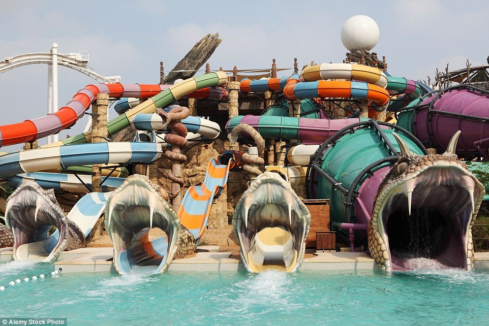 | 9. Yas Waterworld Abu Dhabi, Abu Dhabi, Các tiểu vương quốc Ả Rập thống nhất: Đây là công viên nước khổng lồ đầu tiên của UAE, trải rộng trên diện tích 150.000 m2. Công viên có 43 tàu lượn, các máng trượt và trò chơi khiến mọi thành viên trong gia đình đều thấy hài lòng, trong đó có máng trượt xoáy nhanh nhất và dài nhất thế giới.