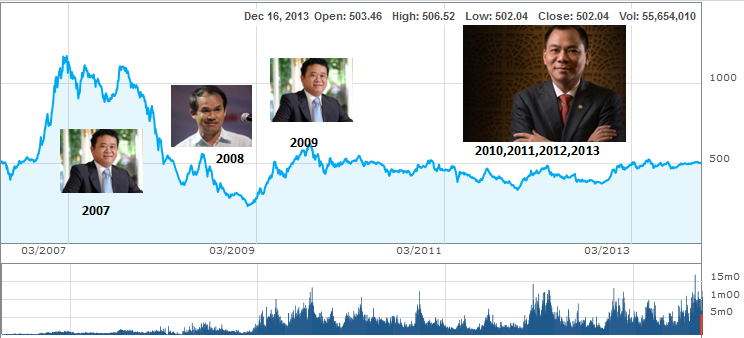 | Giá cổ phiếu HAG tăng 10.58% trong năm 2013 đã khiến tài sản của ông Đức tăng 906 tỷ đồng. |