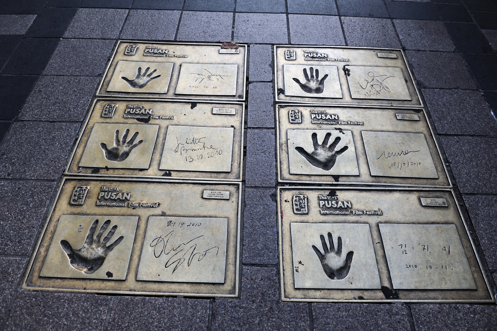 Trên mặt đường ở Busan có nhiều tấm biển in dấu tay của các ngôi sao điện ảnh nổi tiếng thế giới như Mỹ, Pháp, Ý...
