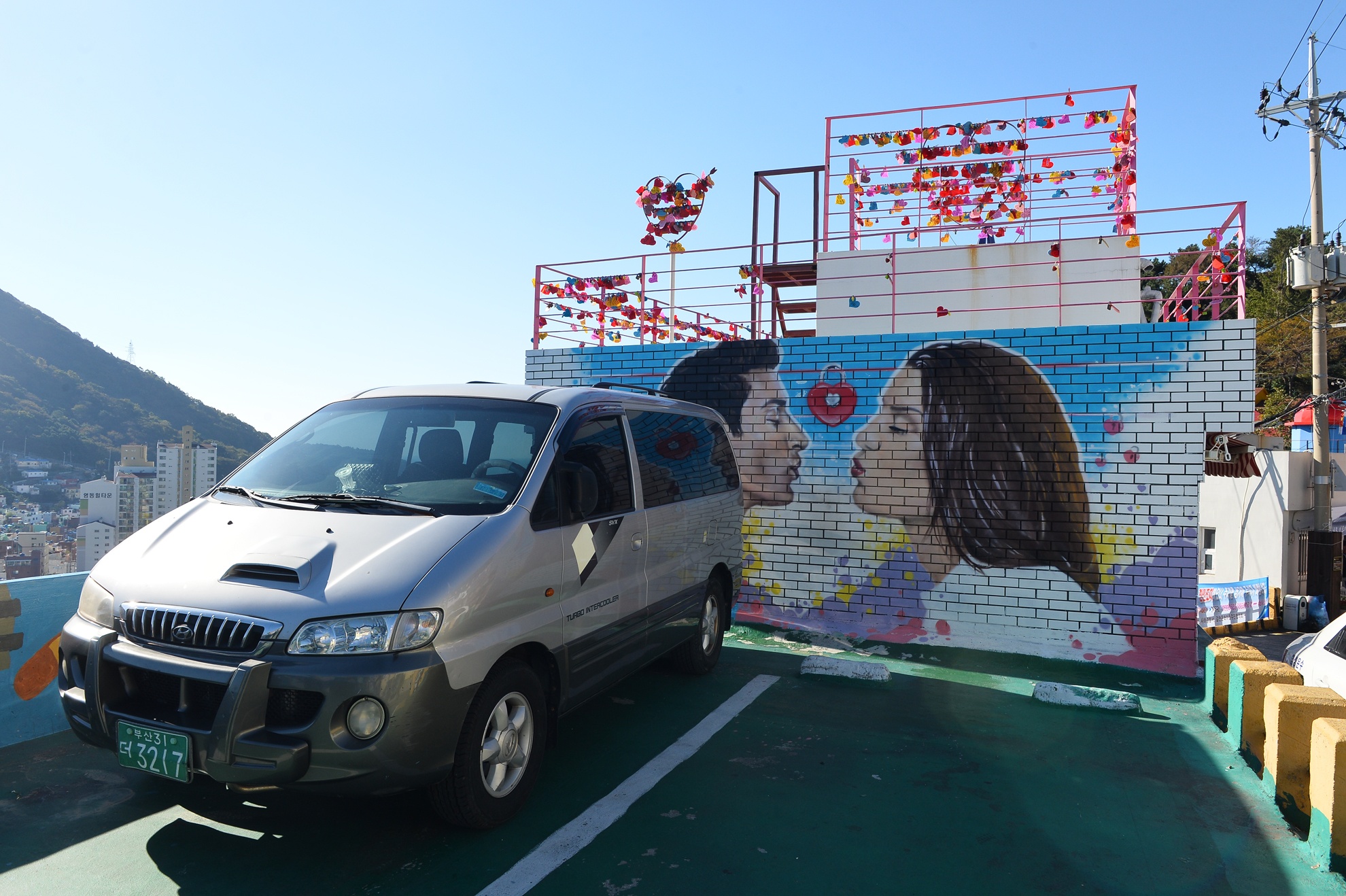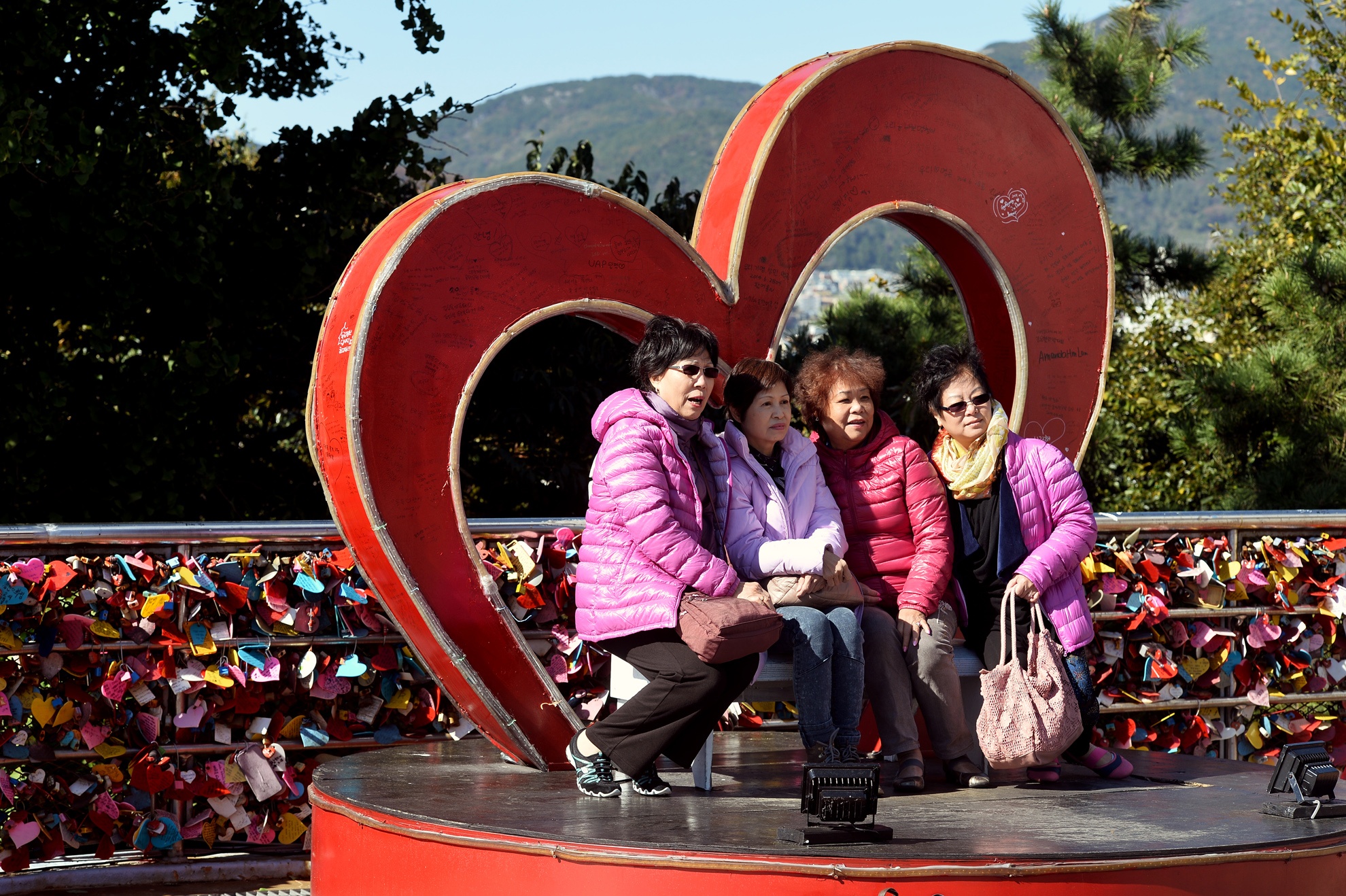 | Đặc điểm nổi bật nhất ở khu vực dưới chân tháp Busan là hình ảnh hàng triệu chiếc khóa tình yêu được các cặp đôi treo trên bờ rào. Gần đó còn có tượng đài tướng quân Lee Sun Sin, một vị nguyên soái vĩ đại triều đại Joseon. |