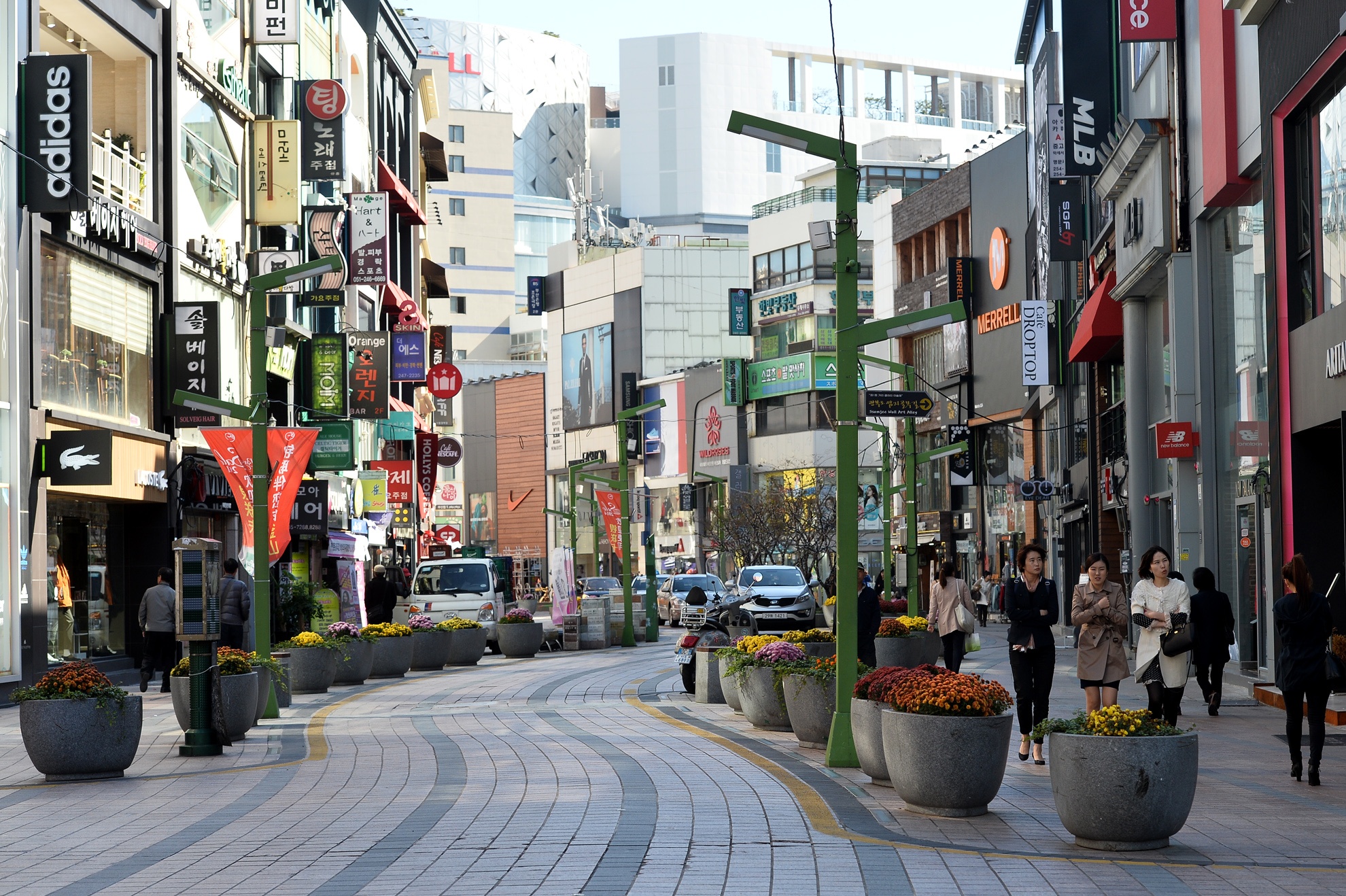 | Địa điểm 1. Phố đi bộ Busan. Với dân số khoảng 4 triệu người, Busan là thành phố lớn thứ hai tại Hàn Quốc. Đặt chân đến đây du khách không thể không dạo một vòng phố đi bộ sạch sẽ, mát mẻ với đầy đủ các cửa hàng bán đồ thời trang của các hãng lớn trên thế giới. Tuyến đường này được thiết kế nhiều tiểu cảnh, trang trí hoa tươi trải dài uốn cong dọc dài từ đầu tới cuối khá bắt mắt. |