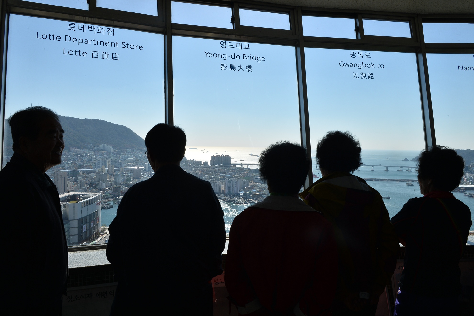 | Tầng chính từ trên cao có thể quan sát toàn cảnh thành phố Busan, mở cửa trong giờ hành chính. Khách đi lên bằng hai thang máy tốc độ cao. |