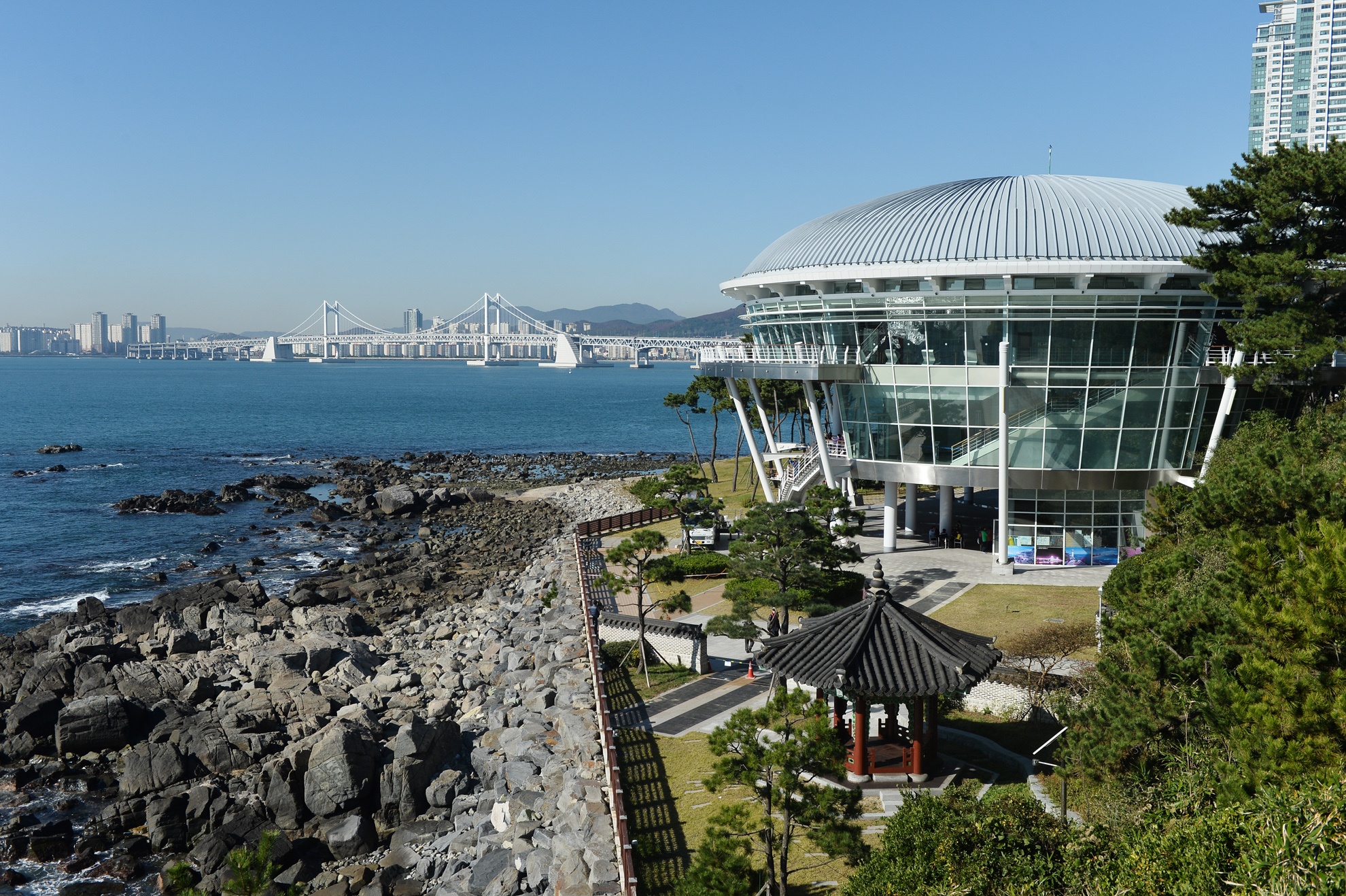 | Du khách có thể đi bộ xuyên rừng để tham quan khu kiến trúc hiện đại này và ngắm quang cảnh xanh mát cùng bờ biển Busan yên bình. |