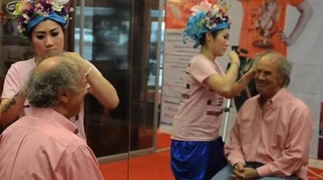 Trong ảnh là người cha đang massage đầu cho con bằng hai quả trứng sau khi cắt tóc tại một trung tâm y tế ở Hợp Phì, An Huy, Trung Quốc. Theo truyền thống của người Trung Quốc, cắt tóc vào ngày thứ 2 của tháng 2 âm lịch sẽ mang lại may mắn. Không có nhiều thông tin về lý do trứng được dùng để massage cho trẻ, nhưng việc này có vẻ mất vệ sinh.