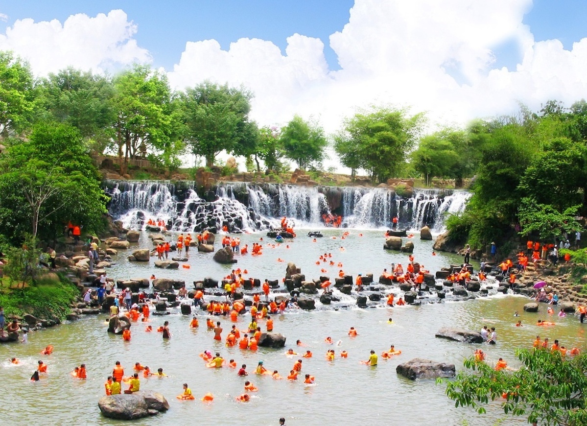 KDL Thủy Châu (Bình Dương) có sông, suối, thác nhân tạo và những bãi cỏ tuyệt đẹp như phim, là địa điểm lý tưởng để bạn cắm trại hay qua đêm trong dịp giỗ Tổ Hùng Vương.