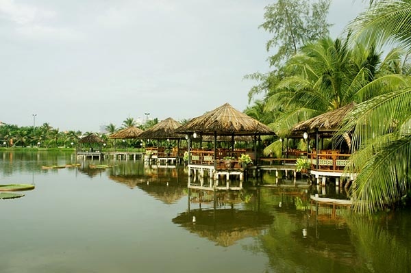 9. KDL Văn Thánh thuộc quận Bình Thạnh, TP HCM là một trong những địa điểm vui chơi quen thuộc, giá mềm của nhiều gia đình. Đến đây, ngoài việc thuê một chòi riêng để ăn uống, ngủ nghỉ... bạn còn có thể lang thang khám phá thiên nhiên xanh mát, ngụp lặn trong hồ bơi... Ảnh: Thegioihinhanh.
