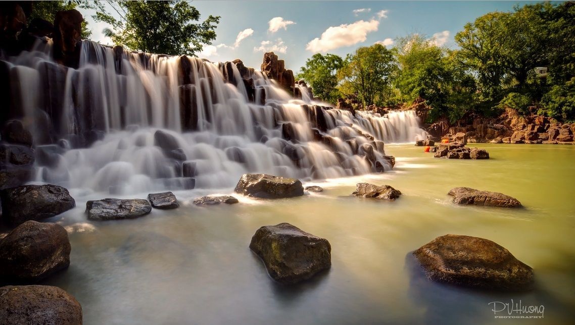 | 6. Thác Đá Hàn thuộc huyện Trảng Bom, tỉnh Đồng Nai, cách TP HCM 50 km. Nơi đây thu hút du khách bởi vẻ thanh bình của làng quê, nét hiền hòa của thiên nhiên miền nhiệt đới và các loại cây trái sum xuê tươi tốt. Ảnh: Nguyên Đạt. |