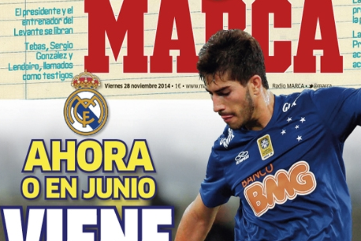 | Báo chí Tây Ban Nha liên tục đưa tin Real theo đuổi Lucas. Ảnh: Marca. |