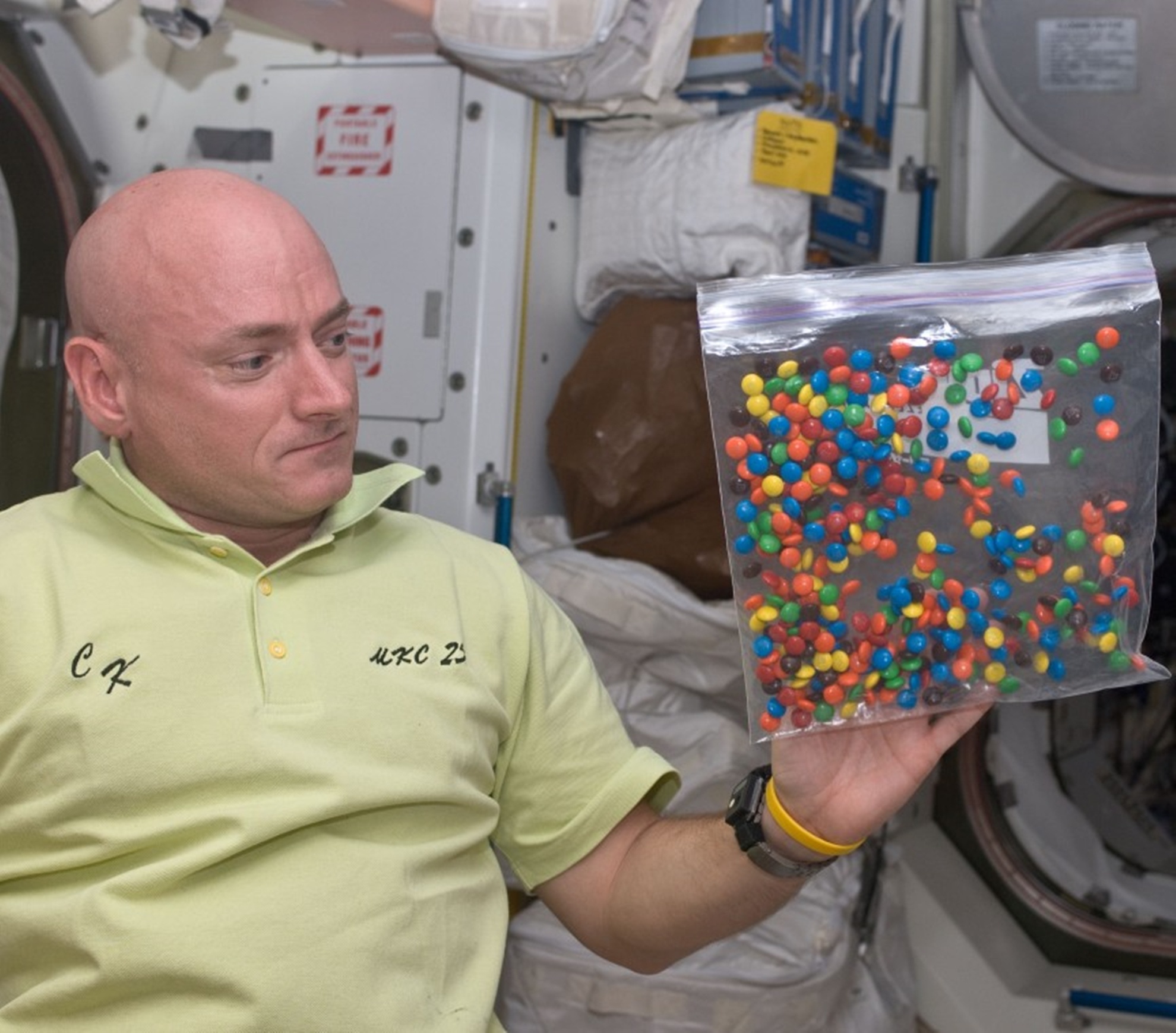 Trong suốt lịch sử chương trình tàu con thoi, kẹo M&M’s được ăn nhiều nhất ngoài vũ trụ vì nó rất dễ ăn. Biên tập viên của trang web lịch sử và hiện vật không gian, Robert Pearlman, từng viết: “M&M’s không chỉ là một món ăn cho các phi hành gia mà nó còn là một công cụ giải trí. Các phi hành gia thường thả chúng ra rồi bắt chúng lại cho vào miệng như những vật thể nổi xung quanh mình”.