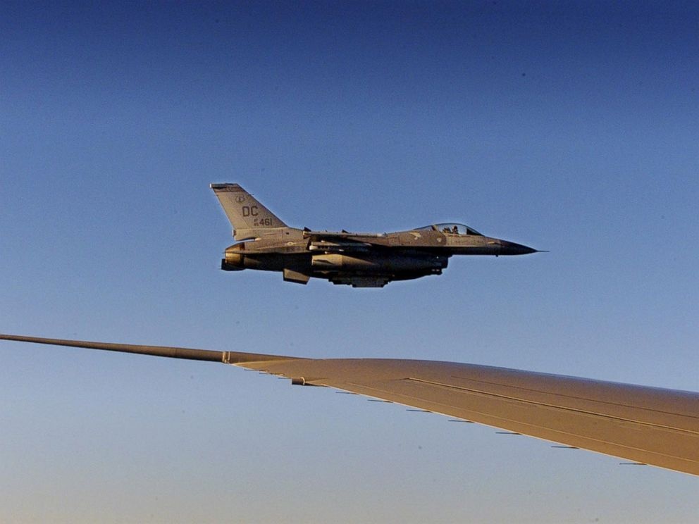 Hai chuyên cơ của tổng thống Mỹ có khả năng di chuyển với vận tốc gần 1.000 km/h, tương đương 92% vận tốc âm thanh. Trong vụ khủng bố ngày 11/9, phi công điều khiển chiến đấu cơ F-16 tháp tùng chiếc Air Force One chở Tổng thống Bush đã phải yêu cầu máy bay di chuyển chậm hơn để dễ dàng bảo vệ. Phi công Mark Tillman khẳng định, chiếc Air Force One gần như đã bay với vận tốc âm thanh. Ảnh: Getty |