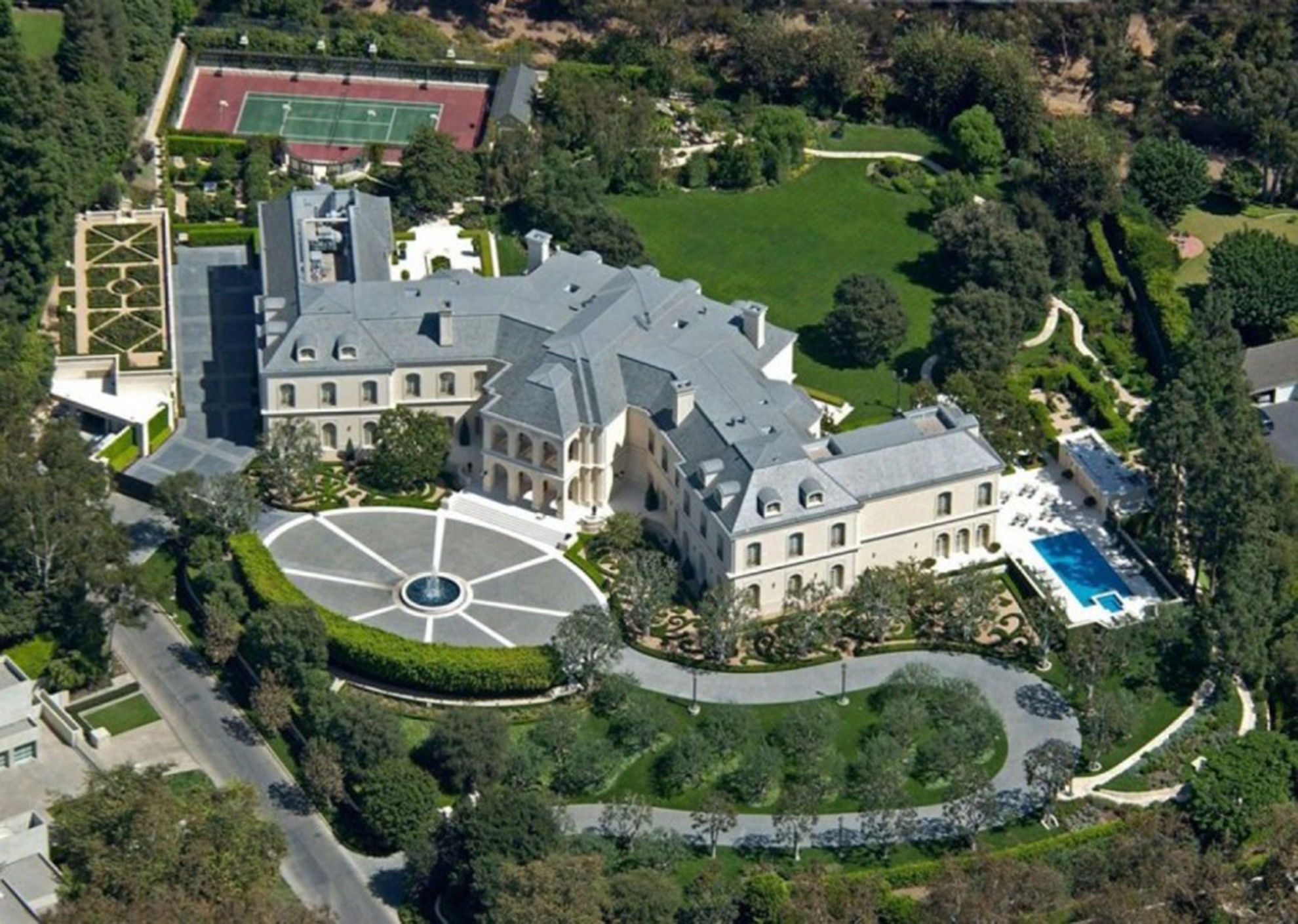 8. The ManorThe Manor, còn được biết đến với cái tên Spelling Manor, là dinh thự xa hoa tọa lạc tại Los Angeles, California, Mỹ. Dinh thự này được xây dựng cho nhà sản xuất truyền hình Aaron Spelling và gia đình. Chủ nhân hiện tại của căn nhà là Petra Ecclestone, con gái Bernie Ecclestone. Khi Ecclestone mua căn nhà này, nó đang được rao bán với giá 150 triệu USD. Dù sau đó cô mua được nó với giá 85 triệu USD, đây vẫn là căn nhà đắt nhất tại Mỹ khi được rao bán. Dinh thự có 123 phòng gồm phòng chiếu phim, phòng thể hình, khu chơi bowling, sân tennis, bể bơi và một phòng dành riêng cho việc gói quà. |