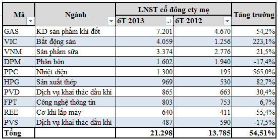 3/4 chặng đường của năm 2013 trôi qua, các doanh nghiệp cũng đang hoàn tất việc công bố kết quả kinh doanh 6 tháng đầu năm. Soi kết quả kinh doanh 10 doanh nghiệp đạt LNST (của cổ đông công ty mẹ) lớn nhất, có thể thấy được bức tranh khá thú vị. Có vẻ như, bóng đen khủng hoảng kinh tế chưa phủ lên những doanh nghiệp này.