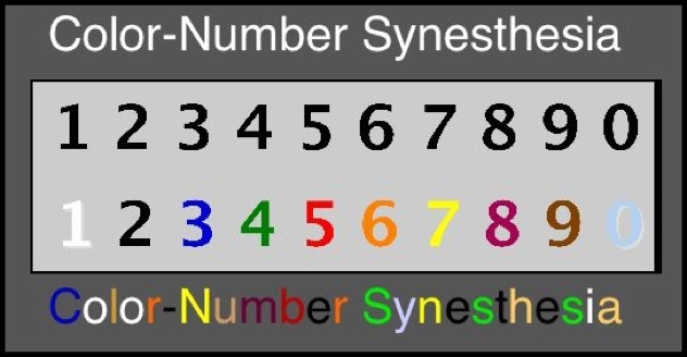 | Nhiều người cảm giác mỗi con số hoặc chữ cái đều có một màu sắc riêng. |