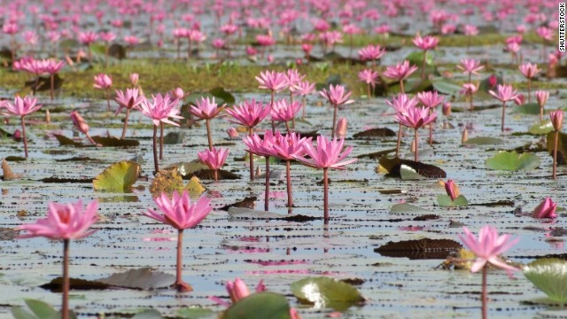 Hồ Nong Harn ở Thái Lan là thiên đường của những bông súng đỏ. Mặt hồ rộng hơn 3.000 ha, phủ đầy hoa súng khi loài thực vật này nở hoa vào tháng 12 hàng năm. Người dân sống quanh hồ cho biết hoa súng ở Nong Harn gắn liền với một câu chuyện tình bi thảm từ xa xưa. Hồ thuộc tỉnh Udon Thani, cách thủ đô Bangkok 560 km về phía bắc. |