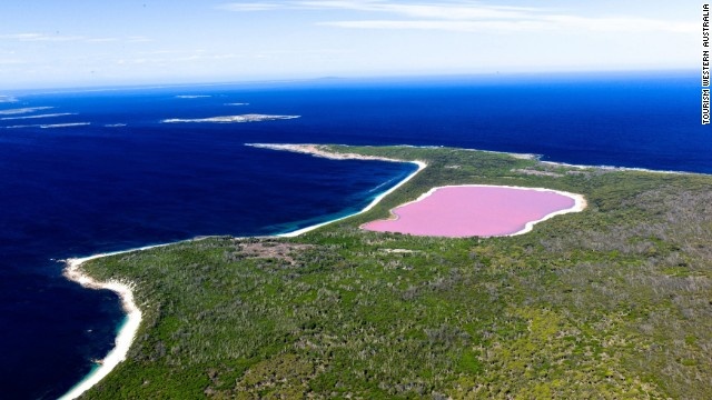 Màu nước của hồ Hillier, Australia giống màu sinh tố dâu tây. Nước hồ giữ nguyên màu hồng trong mọi điều kiện thời tiết, bất kể ngày đêm. Các nhà khoa học chưa tìm ra nguyên nhân khiến nước hồ có màu hồng độc đáo nhưng họ nghi ngờ vi sinh vật và vi khuẩn sống trong nước gây ra hiện tượng này. |