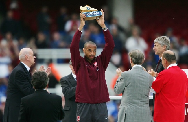 | Chỉ giành 2 chức vô địch Premier League cùng Arsenal, song Thierry Henry vẫn được coi là một trong những huyền thoại của giải đấu này. Tài săn bàn thiên bẩm của trung phong người Pháp giúp anh trở thành chân sút vĩ đại nhất của Pháo thủ với 228 pha lập công (175 tại Premier League) sau 8 năm gắn bó. |