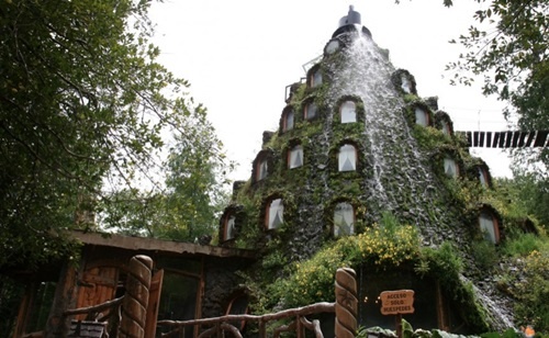 | 3. Magic Moutain Hotel, Chile Khách sạn nằm tại vùng Panguipulli, Chile có hình một ngọn núi. Ngoài ra, nó còn có một thác nước nhân tạo chảy từ đỉnh "núi" qua các cửa sổ phòng nghỉ, đồng thời tưới mát cho những hàng cây được trồng đan xen trên đó. |