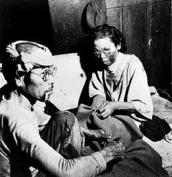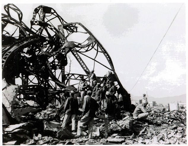| Nagasaki giống như thành phố chết. Lửa cháy âm ỉ khắp nơi, nhà cửa đổ nát, xác người cháy rụi nằm la liệt. |