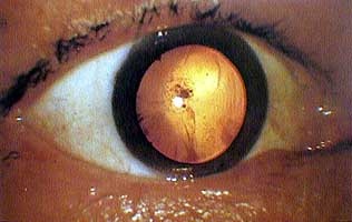 Mắt một người bị đục thủy tinh thể do ảnh hưởng từ vụ nổ.