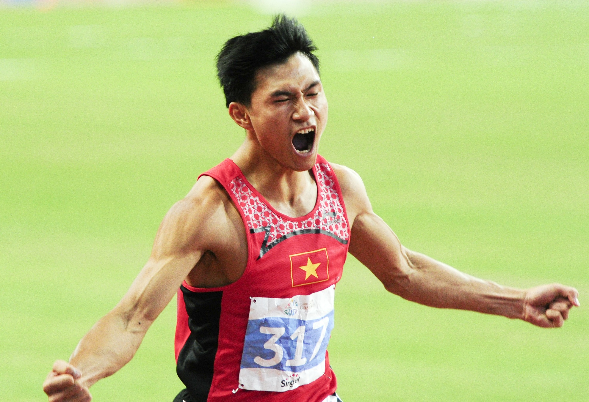 | Lê Trọng Hinh trở thành ông hoàng tốc độ của Việt Nam khi giành huy chương vàng ở cự ly tốc độ. Anh vui mừng tột độ khi cán đích đầu tiên ở chung kết nội dung 200 m nam với thành tích 20,89 giây. |